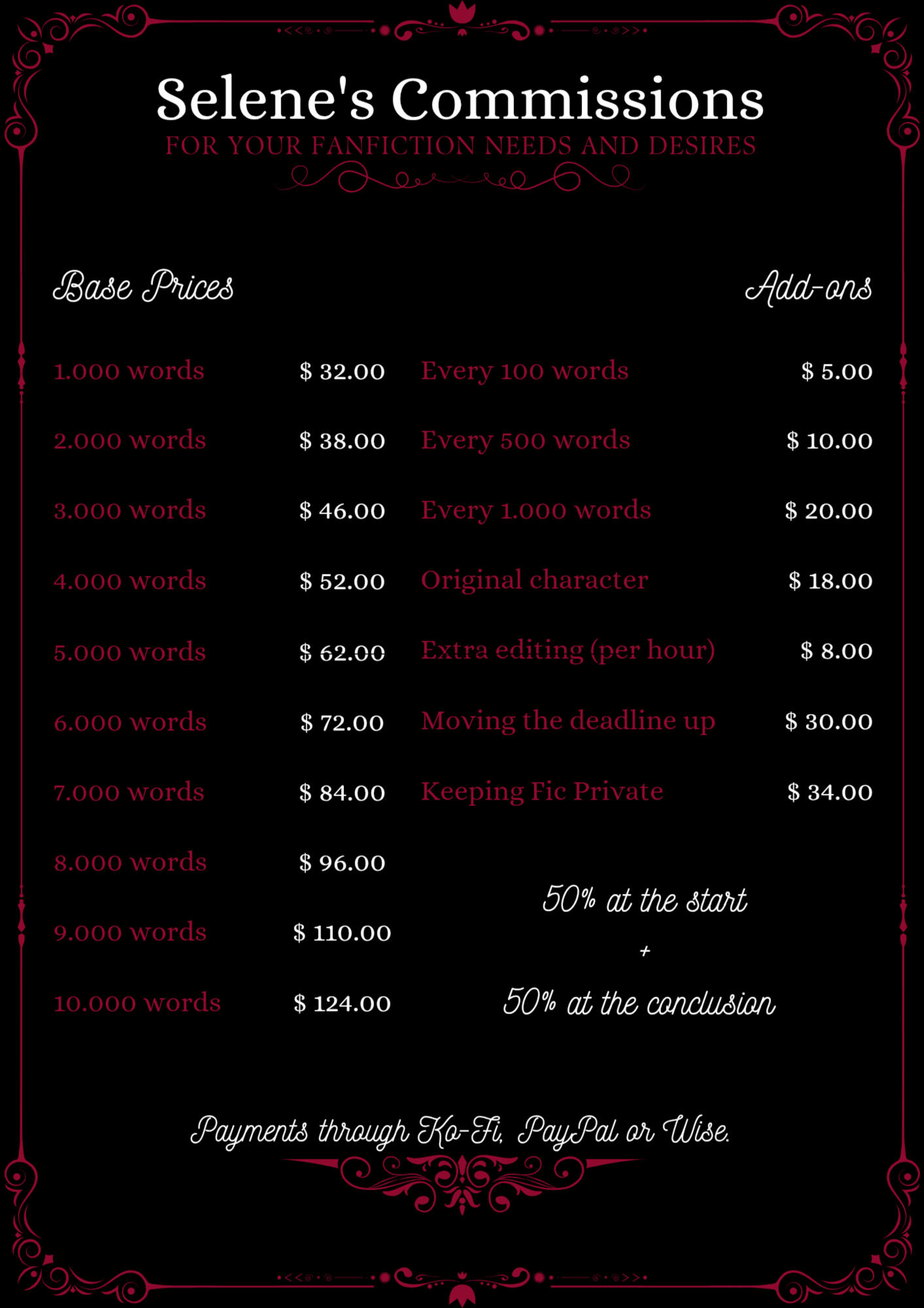 I'm a writer with a love for all things from fantasy to horror. Commissions are currently OPEN. My links are below, and every commission info is at the very end.